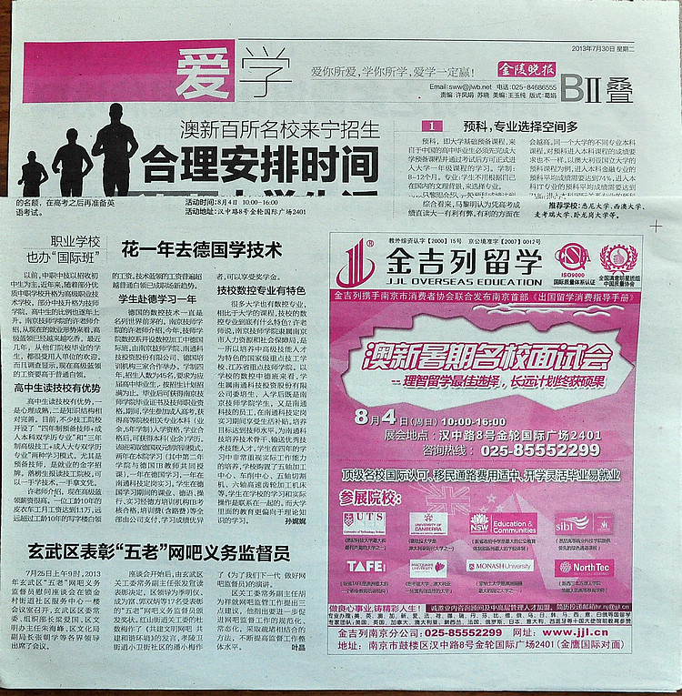 《金陵晚报》B2叠—《职业学校也办“国际班”— 花一年去德国学技术》