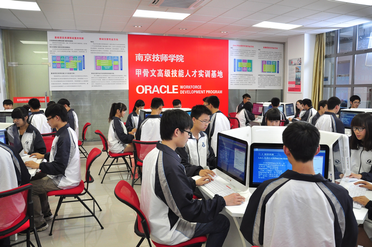 甲骨文云计算实训中心是我院与甲骨文公司共同投资新建的、面向移动互联网技术等专业设立的专业实训中心。该中心采用云计算网络架构,大大简化系统维护的时间,灵活方便系统、课程软件的部署,能够可靠的保证故障恢复和数据冗余。在该实训中心中,可以开设计算机基础与操作系统(包括目前世界上最流行Unix/Linux系统)、多种开发语言的基础及应用(含Java、XML及Oracle SQL语言)、WEB开发技术、Android开发技术、Android应用开发、软件统一过程(含代码管理及测试)、大型企业项目实训。同时还会根据未来技术的变化与发展,紧跟潮流,在国际大公司甲骨文(Oracle)公司的指导下,动态开设最热门、社会最急需的相关课程。