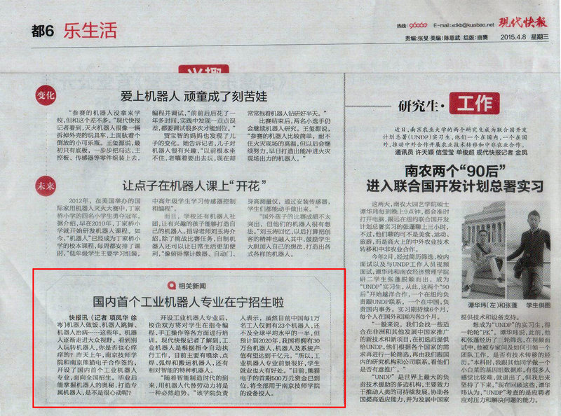 《现代快报》都6—国内首个工业机器人专业在宁招生啦