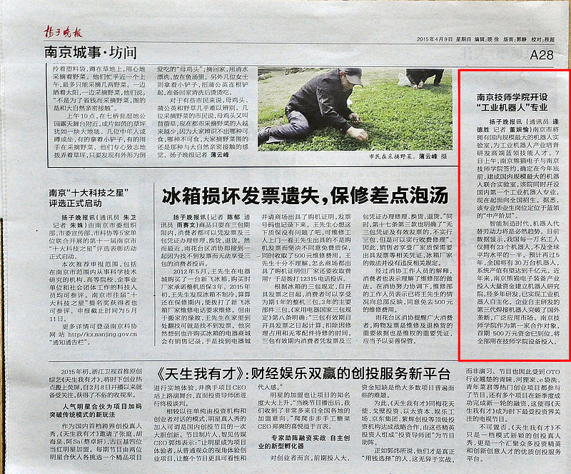 《扬子晚报》A28—米兰平台开设“工业机器人”专业