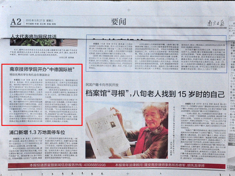 《南京日报》A2—米兰平台开办“中德国际班”