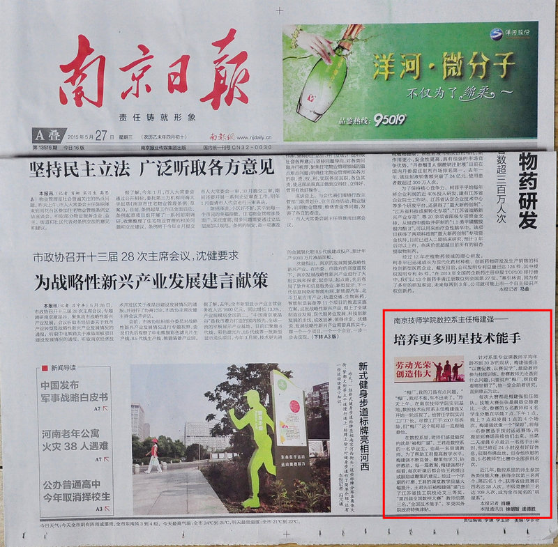 《南京日报》A叠——米兰平台数控系主任梅建强 培养更多明星技术能手