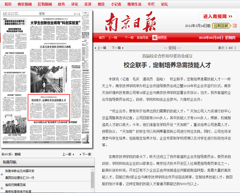 《南京日报》-A02校企联手,定制培养急需技能人才