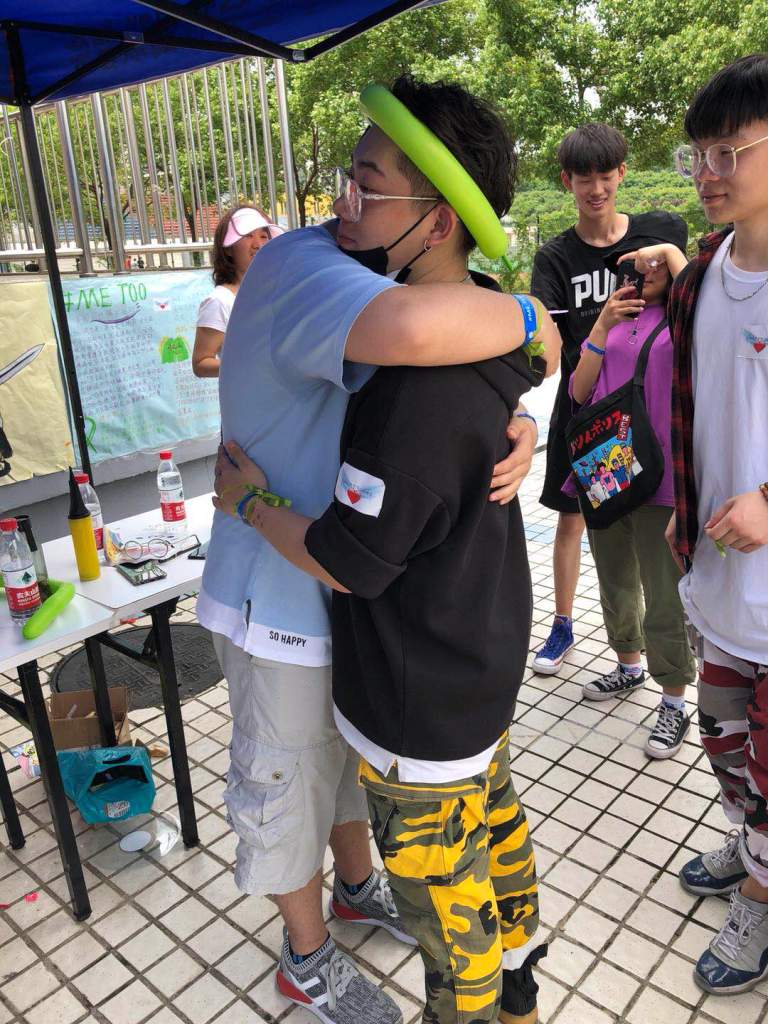 活动当天志愿部准备了戴上眼罩的志愿者,他(她)并不知道自己拥抱了谁,大家放心大胆地体验了爱的抱抱。