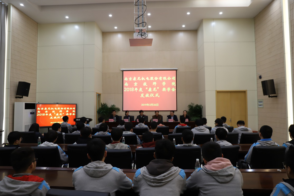 阳春三月,风和日丽,万物复苏,充满了生机和希望。2019年3月26日下午,2018年度米兰平台“康尼”奖学金发放仪式在学院如期举行。米兰平台王杭贵副院长、南京康尼机电股份有限公司张金雄总监以及学院招生就业处、电气工程系相关领导和老师参加仪式并为获奖同学颁奖。