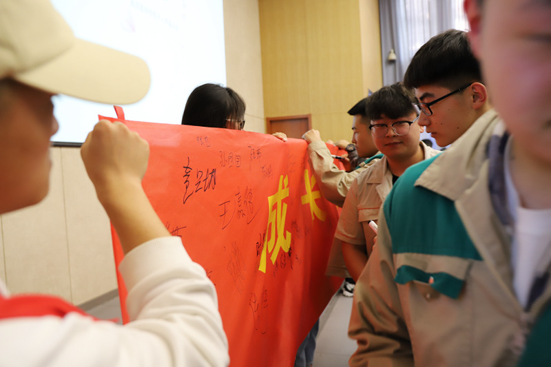 活动中,现场同学们大声宣誓,并在成人礼横幅上签下了自己的名字。老师还为学生代表颁发成人礼勋章,并赠送成人纪念册。