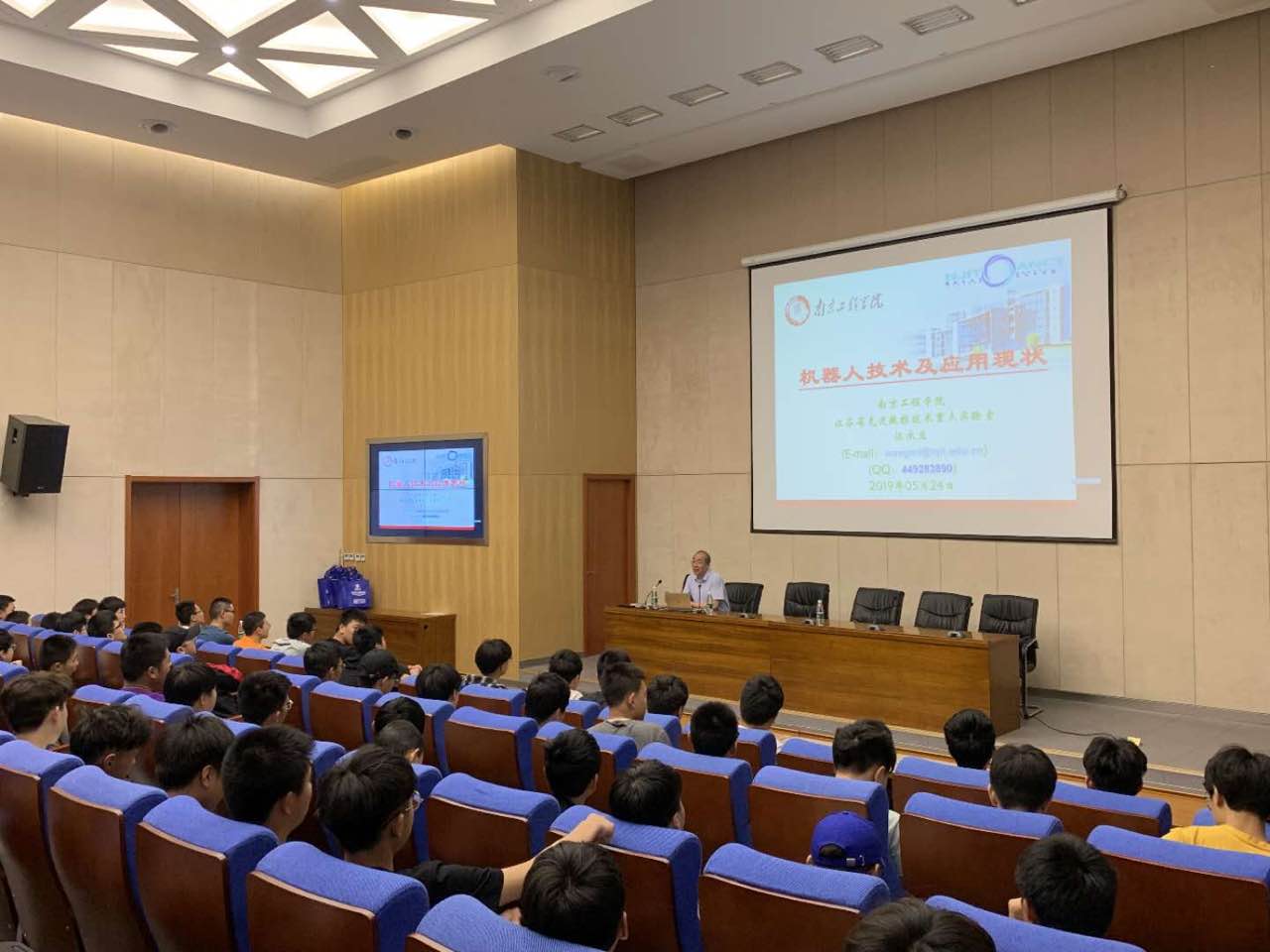 2019年5月25日上午,2019年度南京市高技能人才研修班开班仪式在我院举行。本次高研班邀请到南京工程学院汪木兰教授、南京熊猫电子装备有限公司市场部部长孙强、南京旭上数控技术有限公司高级工程师吴乐平、米兰平台高级技师陈挺等4位专家为本次高研班进行现代机器人技术应用的专业讲座及技术指导。