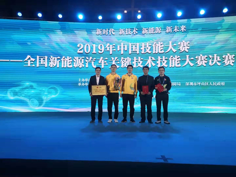 2019年12月8日,由人力资源和社会保障部、中国机械工业联合会主办的2019年中国技能大赛——全国新能源汽车关键技术技能大赛决赛在深圳落下帷幕。我院金标、胡建成两名教师从来自全国的企业、高校、高职和技工院校等64支代表队中脱颖而出,夺得了全国决赛冠军。