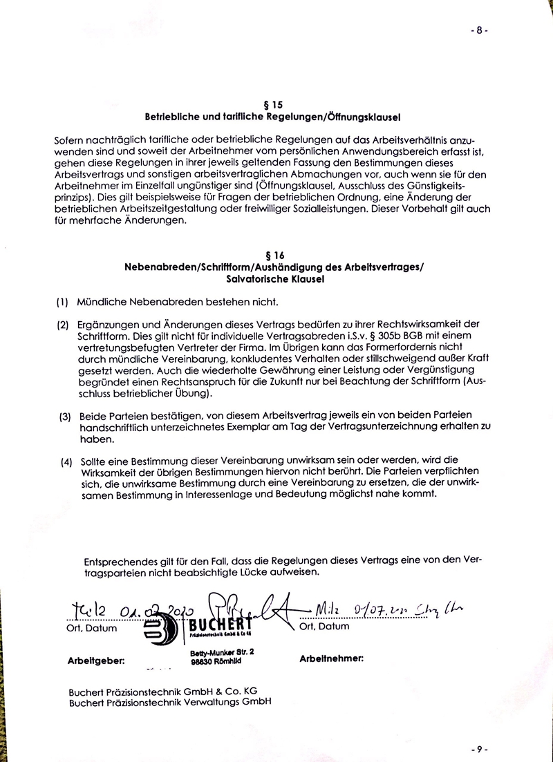 图4:陈世强同学与Buchert公司的签约合同(合同中的部分)