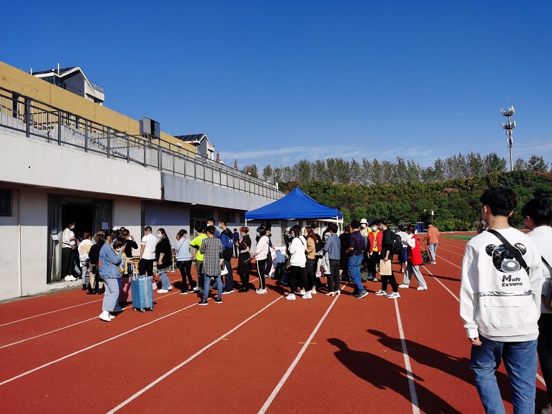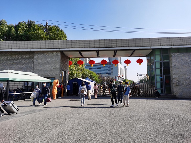 学院实行全天报到,迎新当天,学院安排了校车在地铁站接站新生。