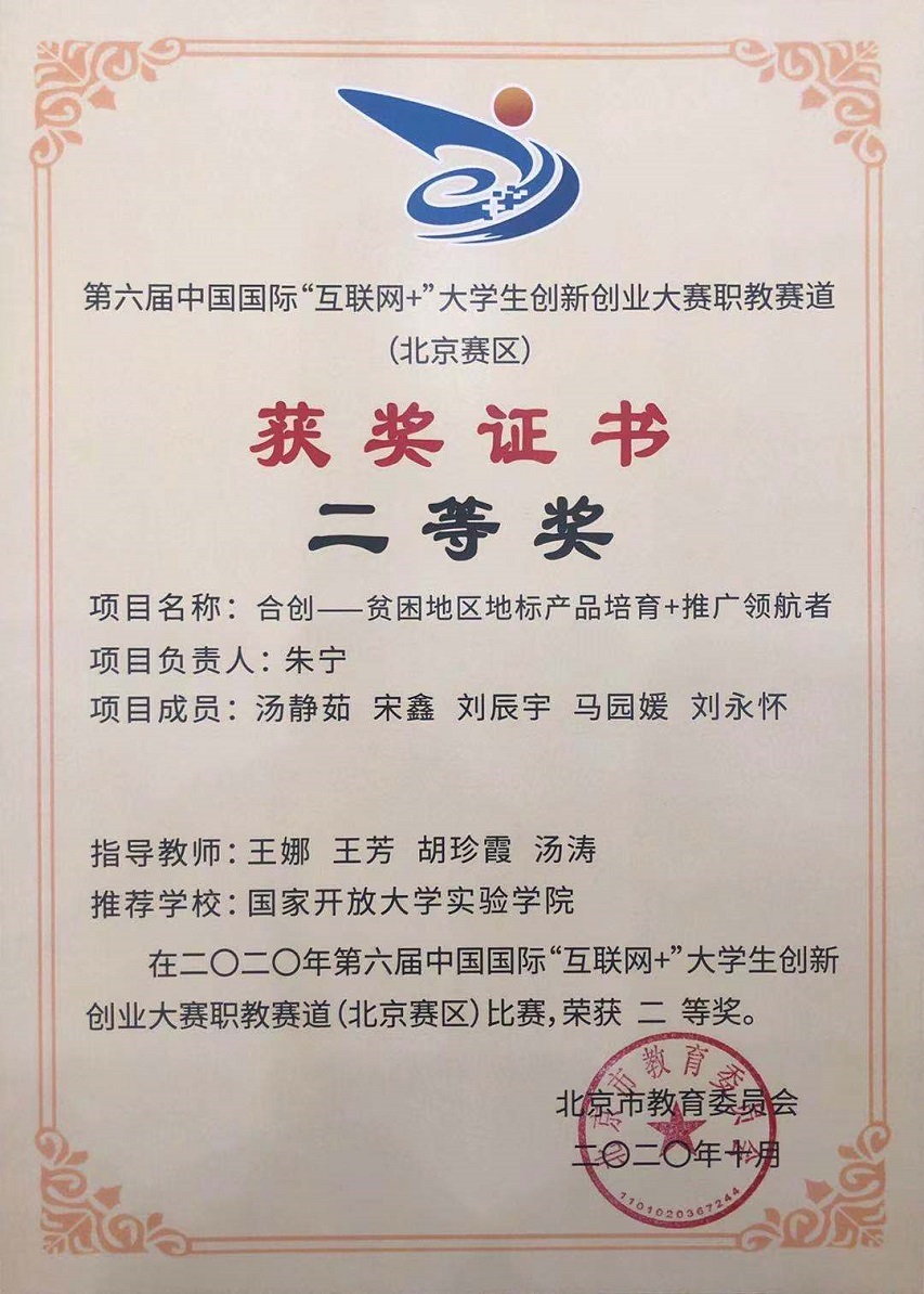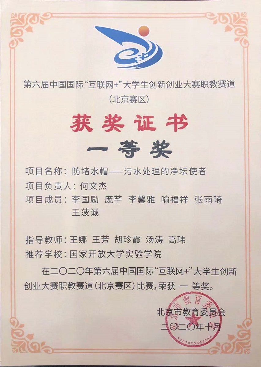 近日,由教育部等12个中央部委共同主办的第六届中国国际“互联网+”大学生创新创业大赛圆满收官,米兰平台参赛队代表国家开放大学实验学院参赛。在国家开放大学和技师学院相关部门的指导和支持下,一路过关斩将,喜获佳绩。“防堵水帽项目”荣获一等奖,“合创项目”荣获二等奖,四位老师被评为“优秀指导教师”,我院荣获国家开放大学实验学院“优秀组织奖”。12月10日,国家开放大学举办线上总结表彰会,国家开放大学实验学院副院长李新惠、刘颖出席,学生工作与教师发展部部长张峦峤、实验学院副院长郭青春为我院颁发奖状。