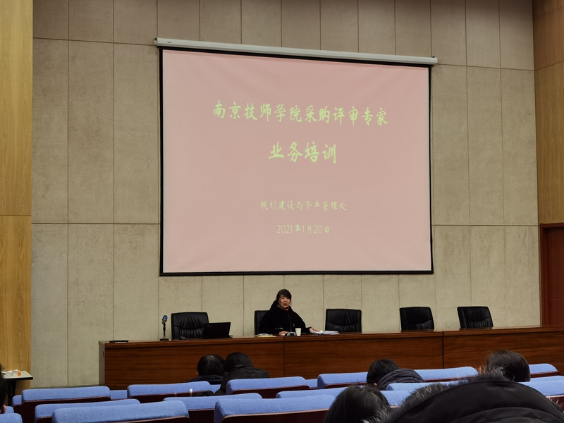 1月20日上午,学院举办了政府采购评审专家业务培训班,特邀南京市公共资源交易中心资深专家顾澄珊来校授课,朱胜强、俞岚等院领导及学院60多名采购评审专家参加了培训。