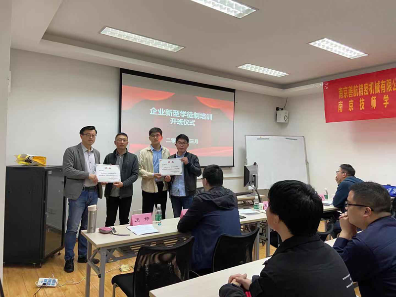 本次开班仪式由智能制造系徐文城老师主持,首先校企双方领导分别做了开班致辞,对于本次开班赋予了较高的定位、提出了较高的要求,接着导师代表和学员代表分别进行了表态性发言,均对本次开班学习要求表达了较强的信心。最后,与会领导给“南京善航—米兰平台”企业新型学徒制的双方导师代表颁发了聘书。