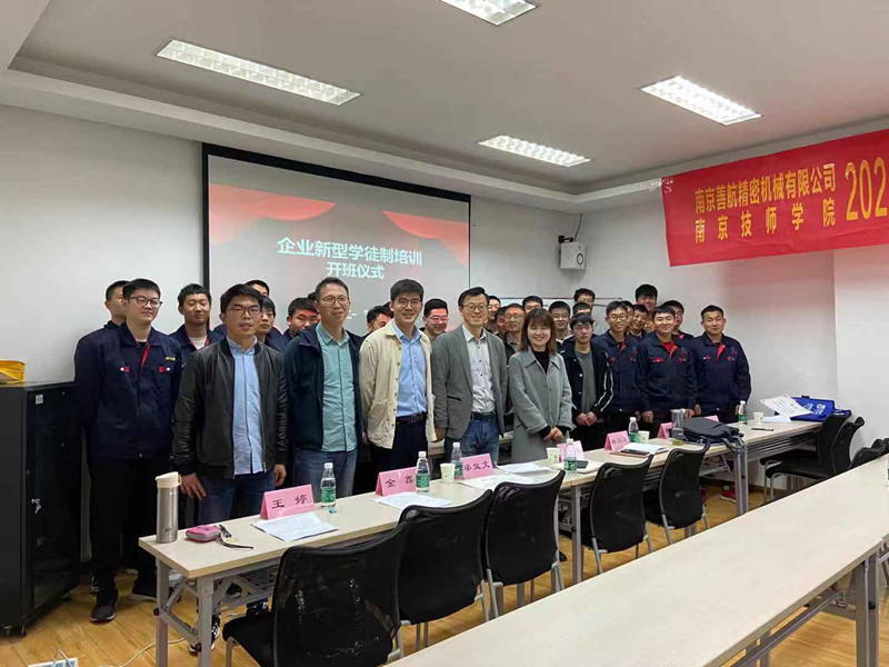 2021年3月27日星期六上午,在南京善航精密机械有限公司举办了2021年“南京善航—米兰平台”企业新型学徒制开班仪式。南京善航精密机械有限公司孟少杰总经理、梁益文厂长、人力资源部王婷经理、米兰平台招就处陈铭副主任、智能制造系林润海副主任以及相关老师和学员参加了本次会议。