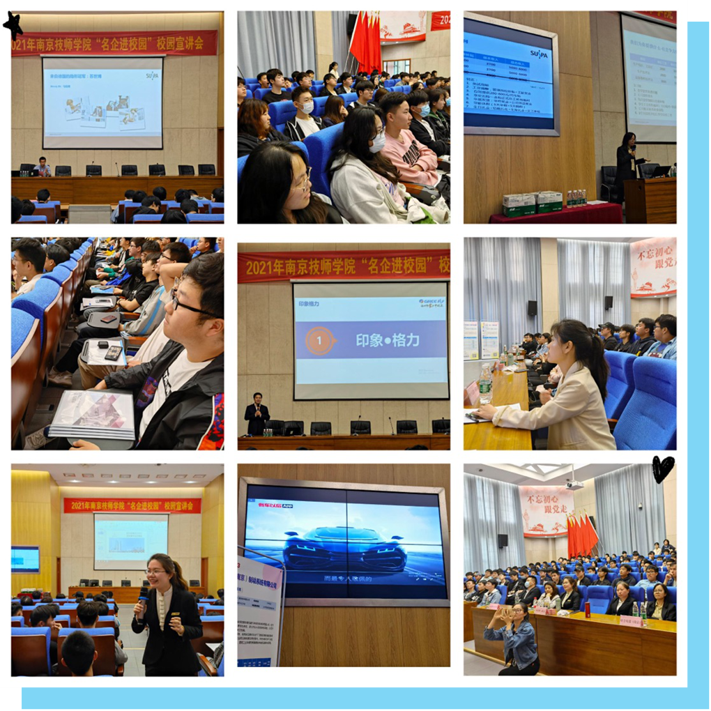 为进一步促进我院2021年实习、就业推荐工作的开展,做实优生优推荐工作,招生就业处于2021年5月20日下午举办了“名企进校园”宣讲会。本次活动邀请了苏世博(南京)减振系统有限公司、格力电器(南京)有限公司、布雷博(南京)制动系统有限公司以及南京国际青年会议酒店等四家优质实力企业进校招聘,组织了17级高职班、高中技师班等150名优秀学生到场听讲和现场面试。