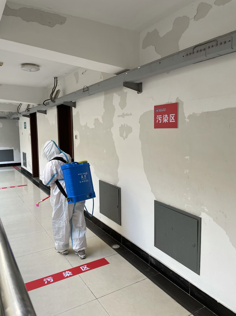 保洁人员为隔离区消毒