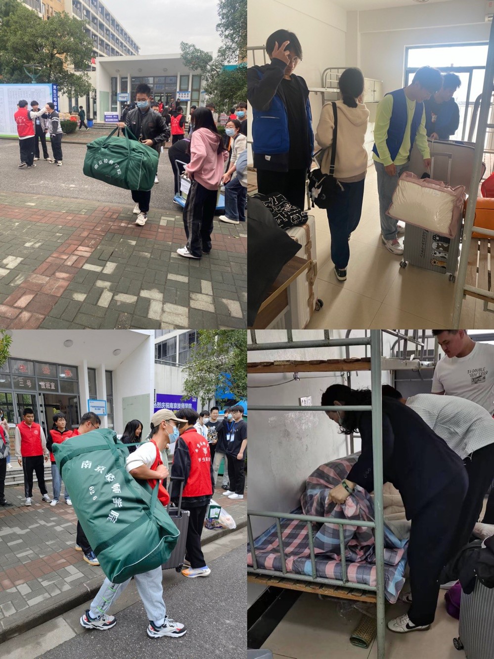 本次迎新家长不可陪同新生进入校园,各系部召集迎新志愿者与志愿教师,偕同院学生会志愿者,在东北门、东南门、各系部教学楼下及宿舍楼等区域提供志愿服务。志愿者一对一服务,依次引导新生到达教学楼区域完成报到,帮助新生学弟学妹拿行李的同时为他们介绍教学楼、宿舍、食堂等区域,并帮助新生将行李搬上宿舍楼,宿管阿姨帮助新生整理被褥。整个过程分工明确、有条不紊,志愿者们的耐心服务获得一致好评。