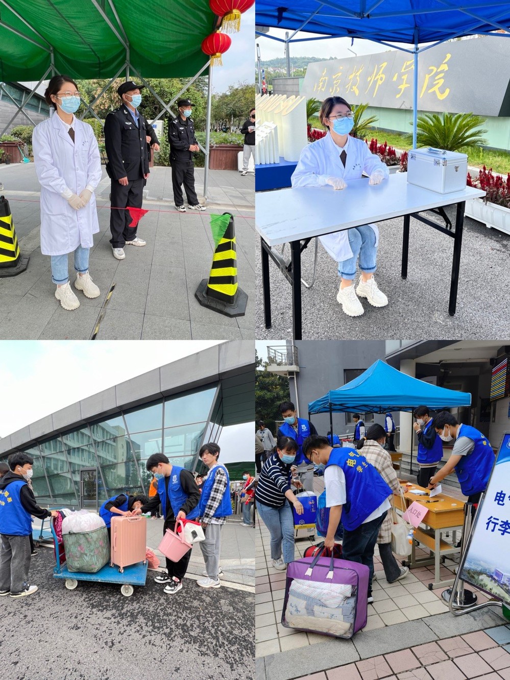 因疫情防控需要,我院于东北门和东南门设立测温通道与临时观察点,医生护士驻守测温点,新生进校须查验两码与48小时核酸检测报告,严格测温、佩戴口罩后方能进入校园。