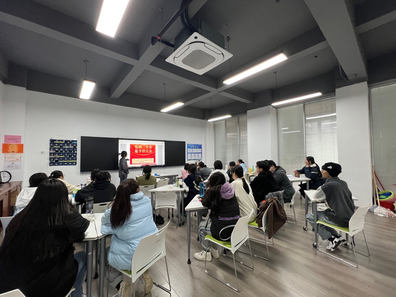 首先通过本次主题班会,讲解了中国共产党第二十次全国代表大会,是在全党全国各族人民迈上全面建设社会主义现代化国家新征程、向第二个百年奋斗目标进军的关键时刻召开的一次十分重要的大会。党的二十大科学地谋划了未来一个时期党和国家事业发展的目标任务和大政方针,擘画了以中国式现代化全面推进中华民族伟大复兴的宏伟蓝图。