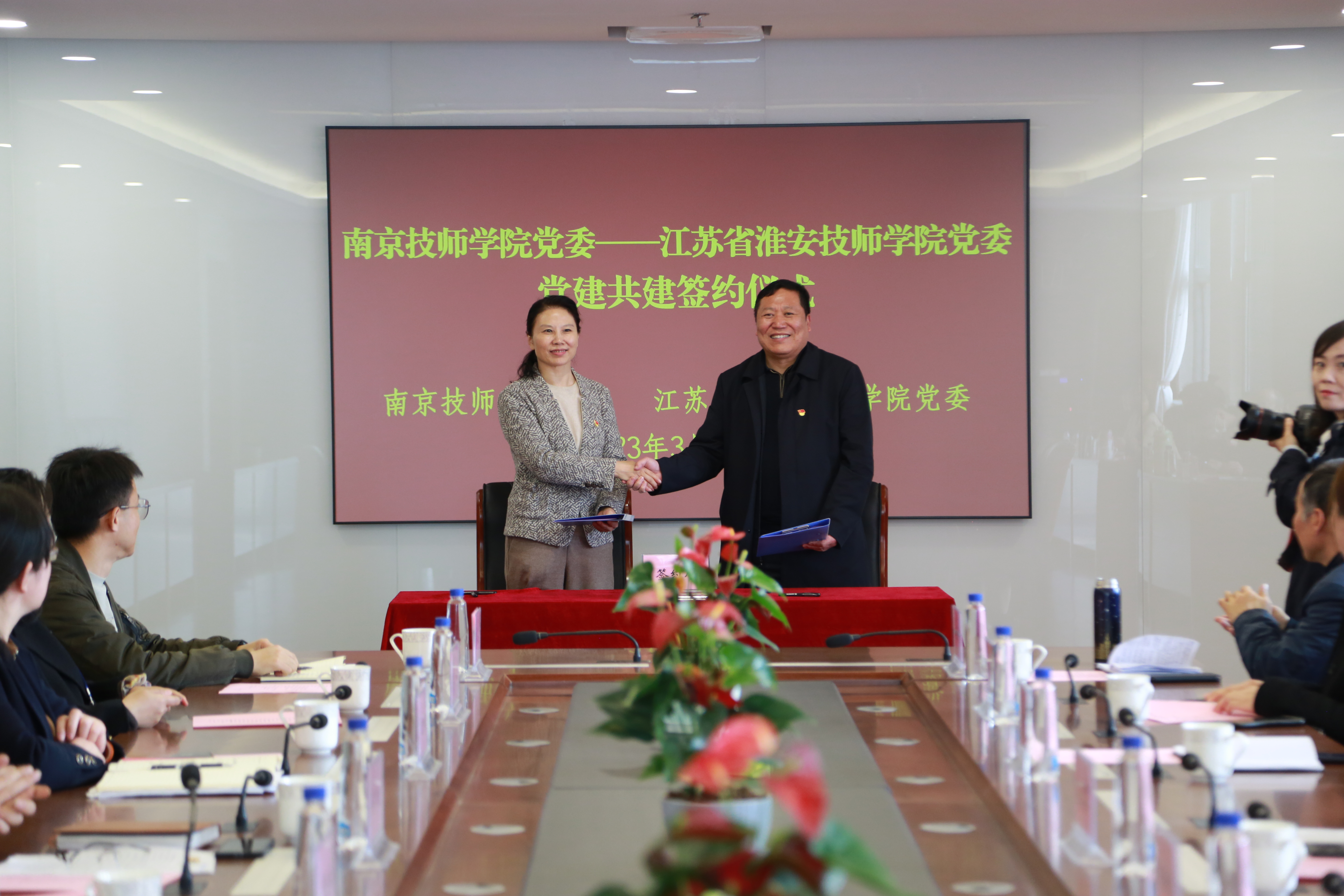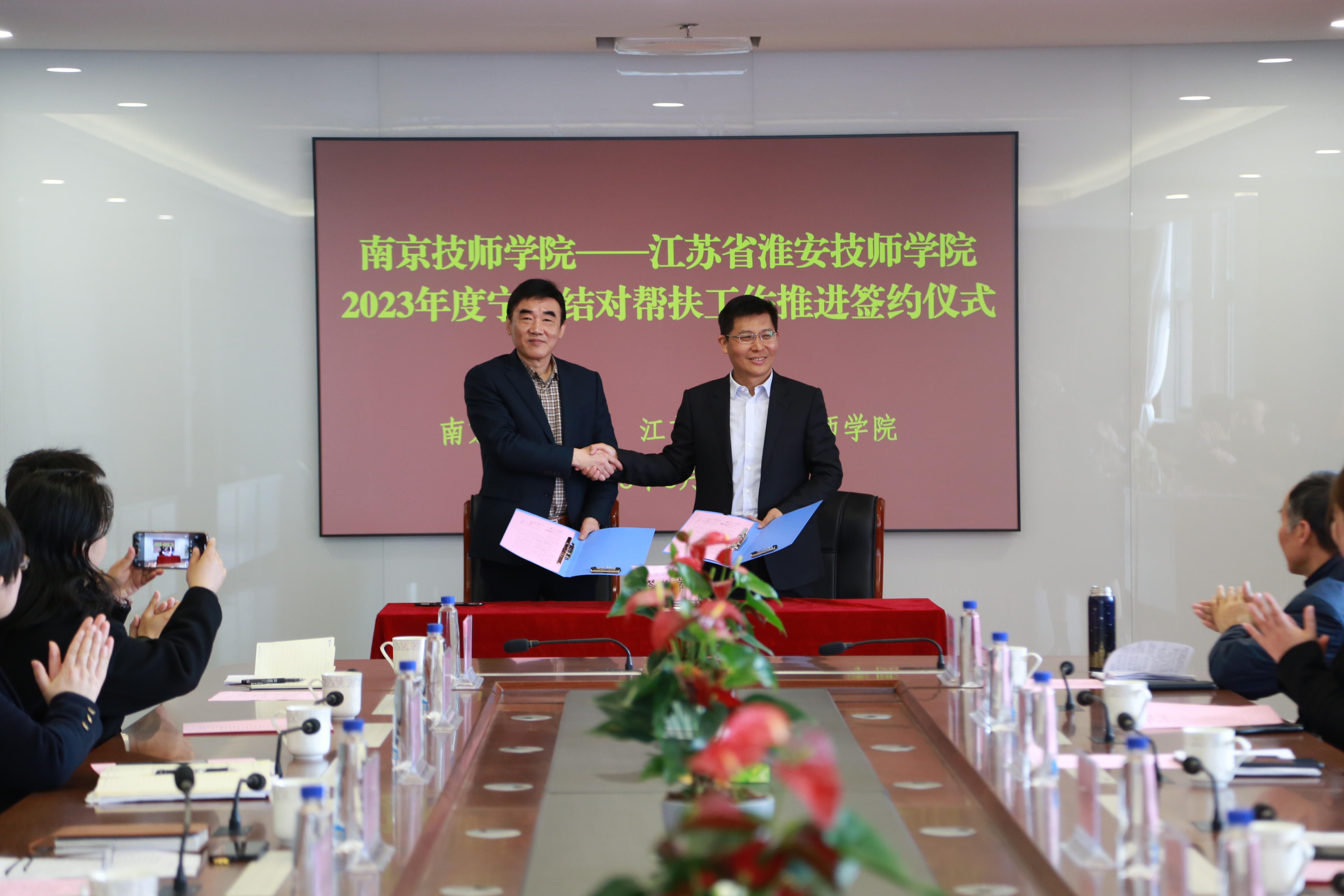 交流研讨会上,张金梅书记致欢迎辞,侯放院长介绍了学院办学情况和发展改革的成就经验。杨恒忠书记表达了对学院承接宁淮帮扶的谢意以及淮安技师学院借此将大力加强内涵建设意愿。两校在会上签订了“米兰平台党委—江苏省淮安技师学院党委党建共建协议”和“米兰平台—江苏省淮安技师学院2023年度宁淮结对帮扶工作推进协议”。双方将在新的起点上形成更紧密高效的合作,加强学习交流。将按照协议内容,充分发挥各自办学优势,共同促进高质量发展。