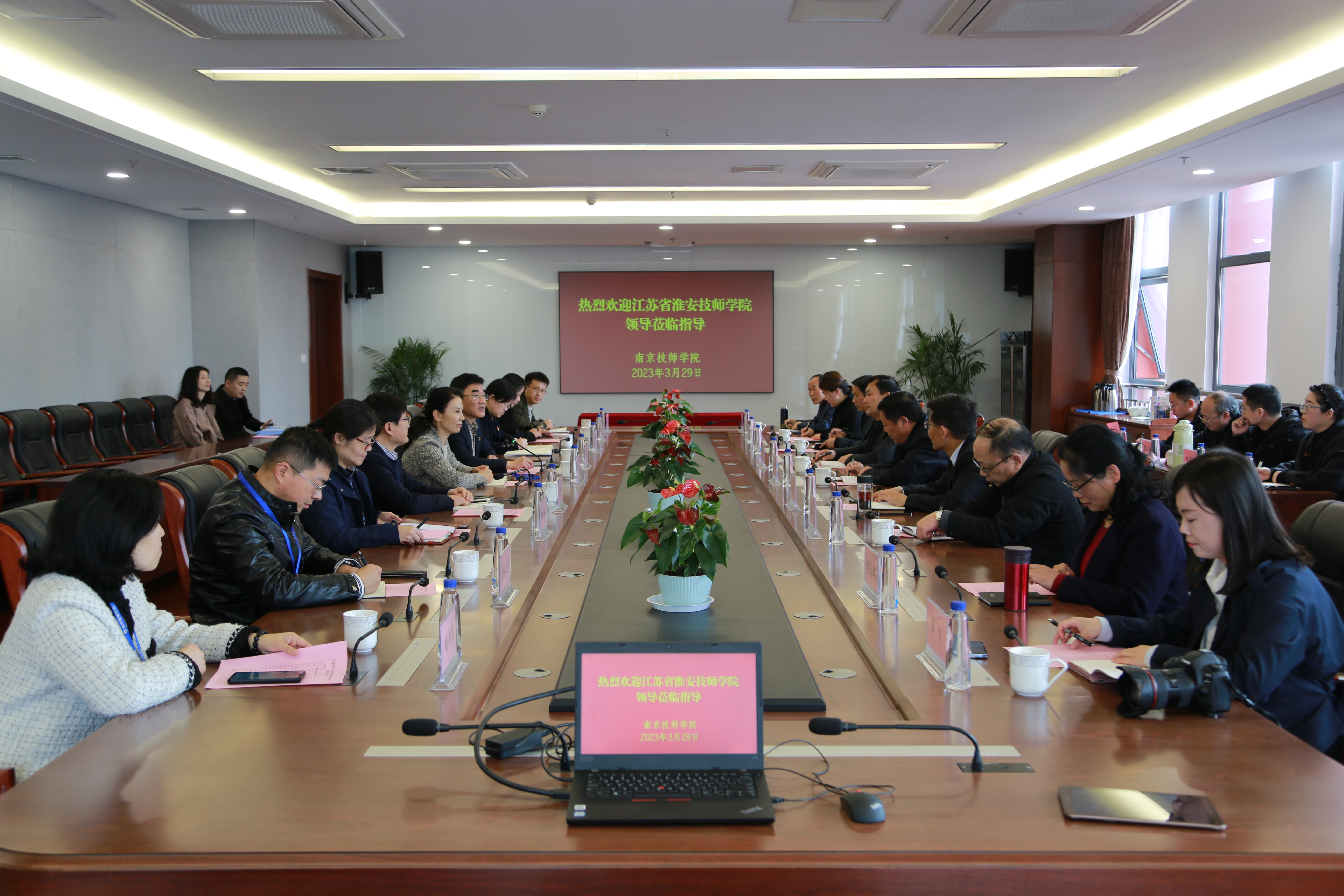 根据省委、省政府关于创新完善南北结对帮扶合作机制的总体部署,结合宁淮人力资源领域结对帮扶合作工作会议精神,3月29日上午,江苏省淮安技师学院党委书记杨恒忠,党委副书记、院长朱延华,副院长高恒星一行17人来院学习考察。学院党委书记张金梅,党委副书记、院长侯放,副院长赵杰及相关部门负责同志参与接待。
