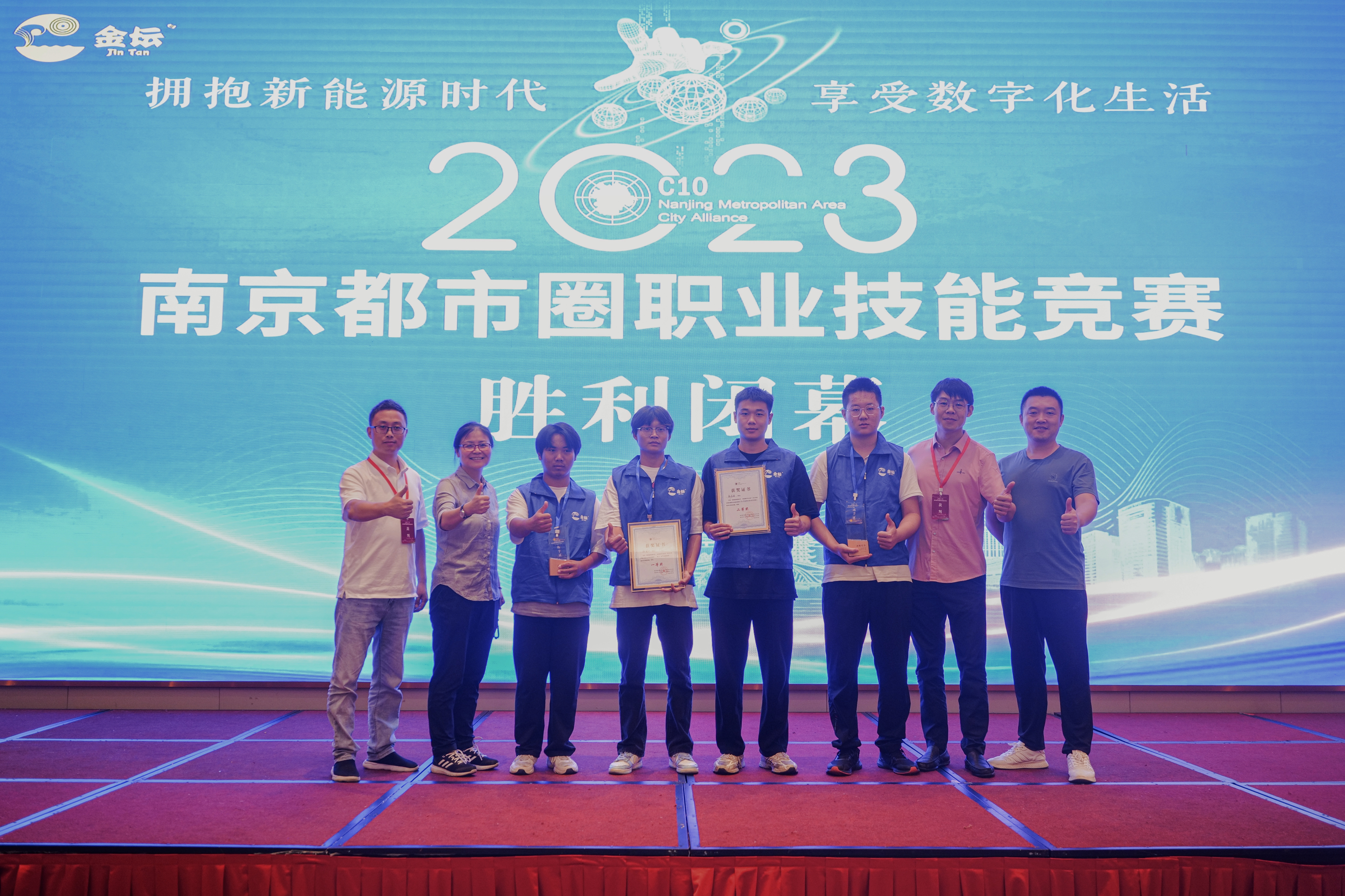 2023年9月7日至9日,由金坛区人社局主办,南京市人社局、镇江市人社局等南京都市圈成员单位共同协办的2023年南京都市圈职业技能竞赛(决赛)在江苏省常州市金坛区举行。院长侯放、副院长赵杰率多工序数控机床操作调整工(四轴加工中心)和电工(电气设备安装)两个项目代表南京市参加角逐。经过激烈的比拼,最终两个项目选手凭借扎实的技能表现和稳定的心理素质,全部获奖,其中,顾国山同学喜获电工第一名、韩苏皓同学获数控操作调整工第二名的好成绩。南京市人社局党组书记、局长刘莅为4个项目第一名选手颁奖。