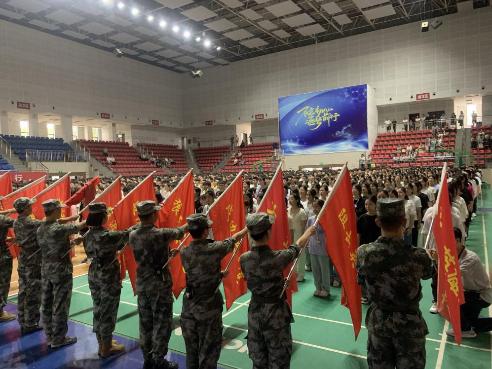 下午,各班级召开新生班会与家长会,对新生进行了入学教育。随后在各班级教官的带领下,新生们整装前往文体中心,参加了综合素质教育拓展开营仪式,副院长俞岚在开营仪式上致辞并授旗。在接下来的综合素质教育拓展中,将通过院党委书记蒋可讲授“开学第一课”、集体科目演练、安全讲座培训、消防疏散演习、国防教育、特色方阵演练等多种形式,提升新生的综合素养,帮助新生尽快适应校园生活,开启学习新征程。